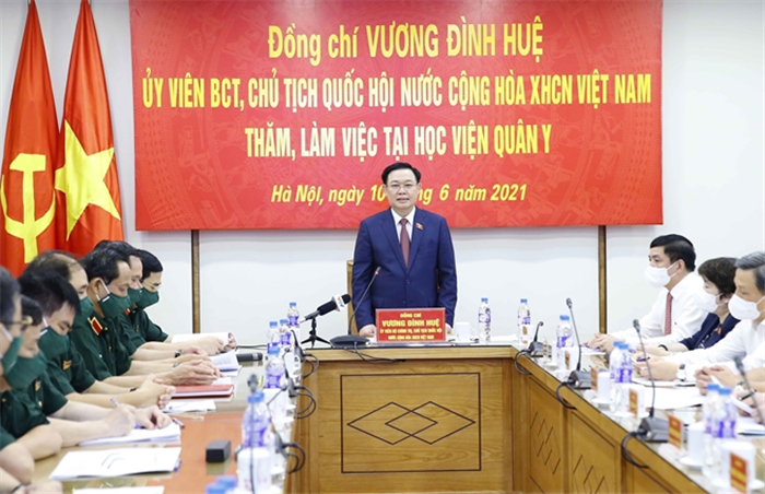 Chiều 10/6, Chủ tịch Quốc hội Vương Đình Huệ đã đến thăm, làm việc tại Học viện Quân y (HVQY), Bộ Quốc phòng.
