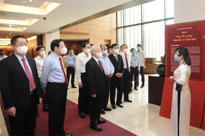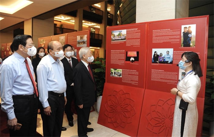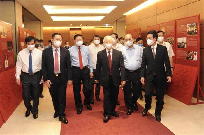 Tham dự Triển lãm có Tổng Bí thư Nguyễn Phú Trọng, Chủ tịch nước Nguyễn Xuân Phúc, Thường trực Ban Bí thư Võ Văn Thưởng; đại diện lãnh đạo các ban, bộ, ngành Trung ương; các đại biểu tham dự hội nghị...