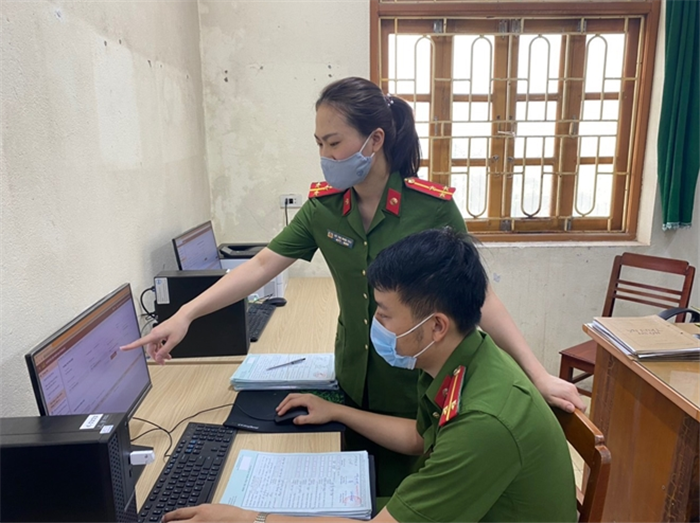 Cán bộ, chiến sĩ Công an miệt mài thu nhận hồ sơ dữ liệu Quốc gia về dân cư. |