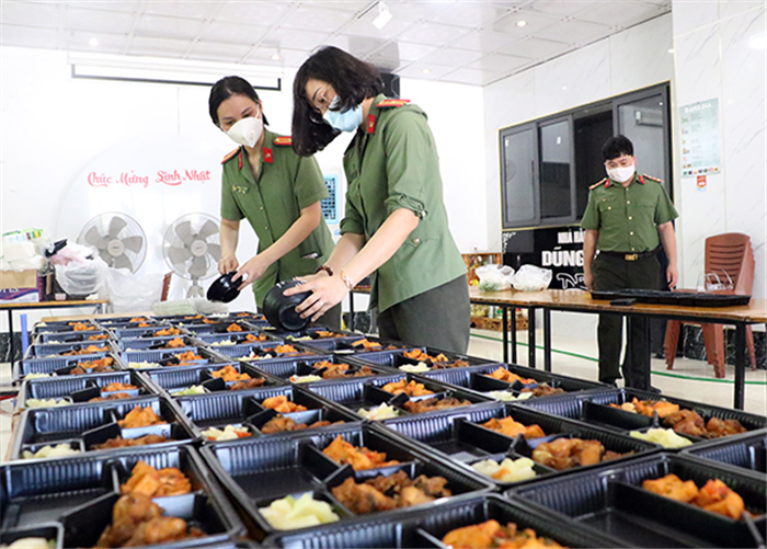 Chuẩn bị các suất cơm hỗ trợ đồng đội trực chốt chống dịch