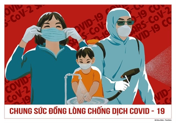 Một mẫu tranh cổ động về phòng, chống dịch Covid-19. |