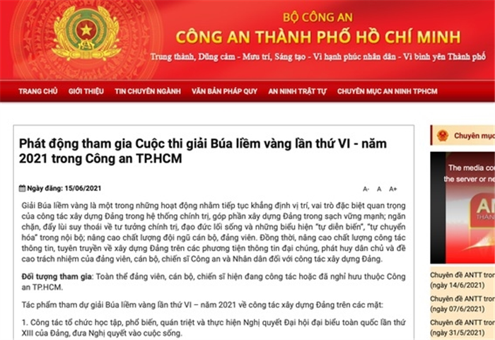 Thông tin về cuộc thi viết được đăng tải trên trang web của Công an TP Hồ Chí Minh. |