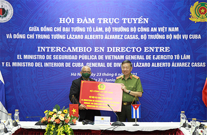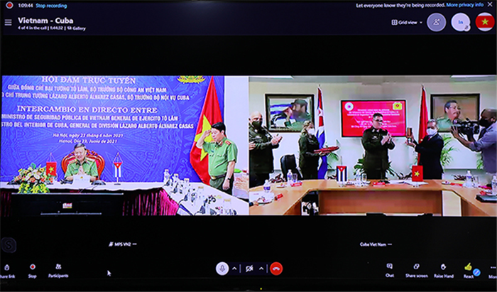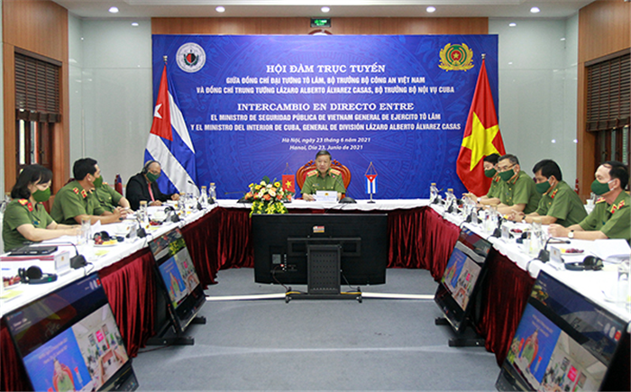 Đó là nội dung trọng tâm của cuộc hội đàm trực tuyến giữa Đại tướng Tô Lâm, Ủy viên Bộ Chính trị, Bộ trưởng Bộ Công an và Trung tướng Lázaro Alberto Álvarez Casas, Ủy viên Bộ Chính trị Đảng Cộng sản Cuba, Bộ trưởng Bộ Nội vụ Cuba, diễn ra ngày 23/6, tại Hà Nội.