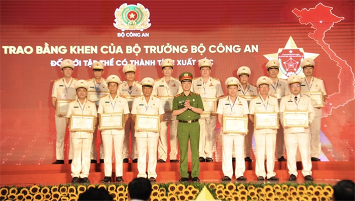 Thứ trưởng Nguyễn Duy Ngọc trao Bằng khen của Bộ Công an tặng các tập thể có thành tích xuất sắc.