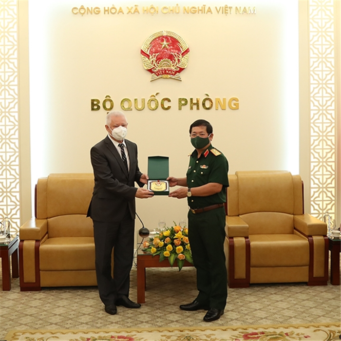 Thượng tướng Lê Huy Vịnh tiếp ông Anatoly Chuprynov, đại diện Cơ quan Liên bang về hợp tác KTQS Nga tại Việt Nam.