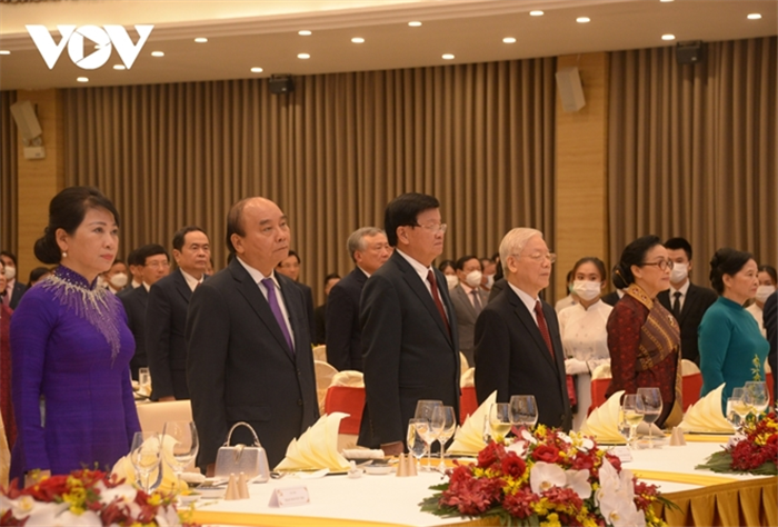 Tổng Bí thư Nguyễn Phú Trọng bày tỏ: Trong bầu không khí dạt dào tình hữu nghị đồng chí, anh em, cùng với những kết quả quan trọng tại các cuộc hội đàm, hội kiến, hòa với niềm vui chung của toàn đảng, toàn quân và toàn dân hai nước trước những thành công rực rỡ của Đại hội đại biểu toàn quốc của mỗi Đảng, chúng ta bồi hồi xúc động tưởng nhớ tới Chủ tịch Hồ Chí Minh vĩ đại, Chủ tịch Kaysone Phomvihane và Chủ tịch Souphanouvong kính yêu, các vị lãnh đạo tiền bối, các bậc lão thành cách mạng, các anh hùng, liệt sĩ của hai đảng, hai dân tộc đã trọn đời hy sinh vì nền độc lập, tự do của dân tộc và hạnh phúc của nhân dân hai nước, xây đắp nên mối tình hữu nghị, đoàn kết đặc biệt Việt Nam - Lào “sâu hơn nước Hồng Hà, Cửu Long”, “vững bền hơn núi, hơn sông”, “sáng hơn trăng rằm, thơm hơn bông hoa nào thơm nhất”.