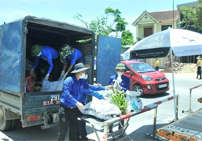Đoàn Thanh niên huyện Thanh Chương, Nghệ An thực hiện mô hình “Nông sản sạch Thanh Chương - 0 đồng” hỗ trợ thực phẩm cho bà con vùng dịch thành phố Vinh. |