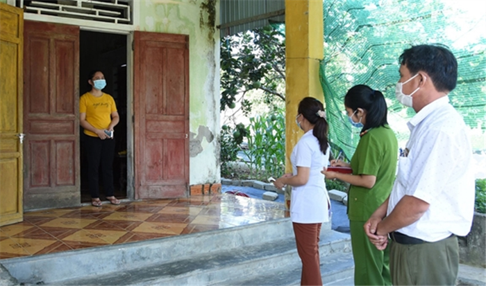 Tổ Covid cộng đồng thôn Hòa Bình (xã Lâm Trung Thủy, huyện Đức Thọ, Hà Tĩnh) nắm tình hình sức khỏe bà con trong thôn. |