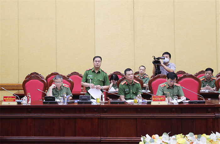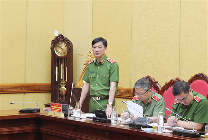 Thiếu tướng Phạm Công Nguyên, Cục trưởng Cục Cảnh sát QLHC về TTXH phát biểu tại cuộc họp