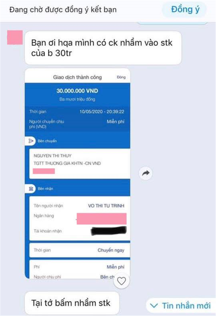 Chị O. nhận được tiền chuyển nhầm với nội dung khó hiểu