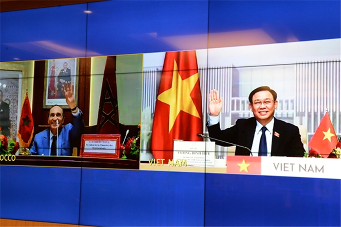 Chiều tối 7-7, đồng chí Vương Đình Huệ, Ủy viên Bộ Chính trị, Chủ tịch Quốc hội đã hội đàm trực tuyến với Chủ tịch Hạ viện Morocco Habid El Malki. Trong không khí thắm tình hữu nghị của cuộc hội đàm, hai bên đã nhất trí thúc đẩy quan hệ kinh tế, thương mại, đầu tư giữa hai nước tương xứng với tiềm năng của mỗi nước cũng như tương xứng với quan hệ chính trị, ngoại giao rất tốt đẹp giữa hai nước.