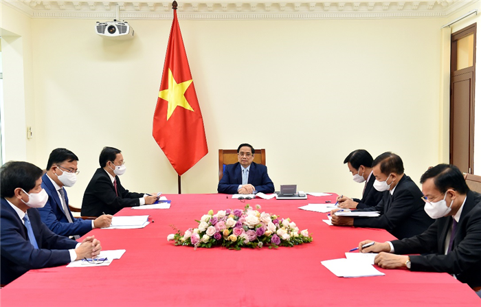 Thủ tướng Phạm Minh Chính mong muốn Việt Nam và Israel phối hợp chặt chẽ trong cuộc chiến chống đại dịch COVID-19 - Ảnh: VGP/Nhật Bắc |