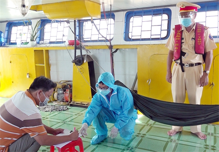 Các tổ công tác được phân công chốt trực 24/24, đảm bảo mọi phương tiện qua lại chốt điều được kiểm soát, khai báo y tế. CBCS làm nhiệm vụ, dùng loa tay thông báo, yêu cầu người điều khiển phương tiện và những người đi cùng vào chốt thực hiện các quy định về kiểm soát phòng, chống dịch. Chốt kiểm soát được đặt ngay trên tàu tuần tra của Cảnh sát đường thủy.