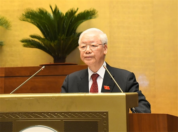 Thay mặt lãnh đạo Đảng và Nhà nước, Tổng Bí thư Nguyễn Phú Trọng nhiệt liệt hoan nghênh, chào mừng các đồng chí đại biểu, khách quý cùng đồng bào, chiến sỹ cả nước, chúc mừng các vị đại biểu mới được cử tri tín nhiệm bầu làm đại biểu Quốc hội khóa XV.