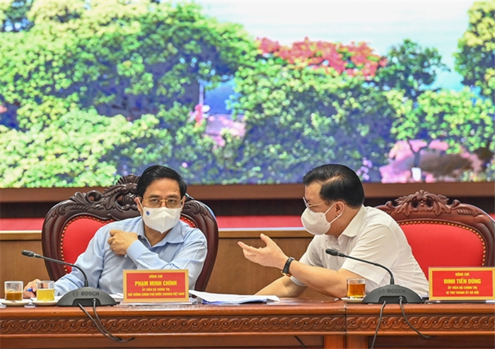 “Hà Nội phải có kịch bản cao hơn về phòng, chống COVID-19 để chủ động trước; bảo vệ bằng được các khu công nghiệp trên địa bàn; tập trung cứu chữa bệnh nhân nặng, hạn chế tối đa ca tử vong; bảo đảm các dòng cung ứng lương thực, thực phẩm”, Thủ tướng Phạm Minh Chính yêu cầu.