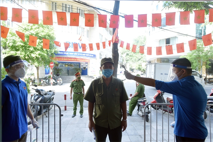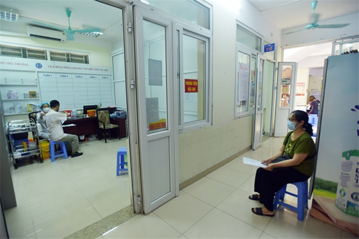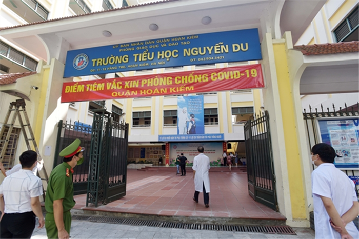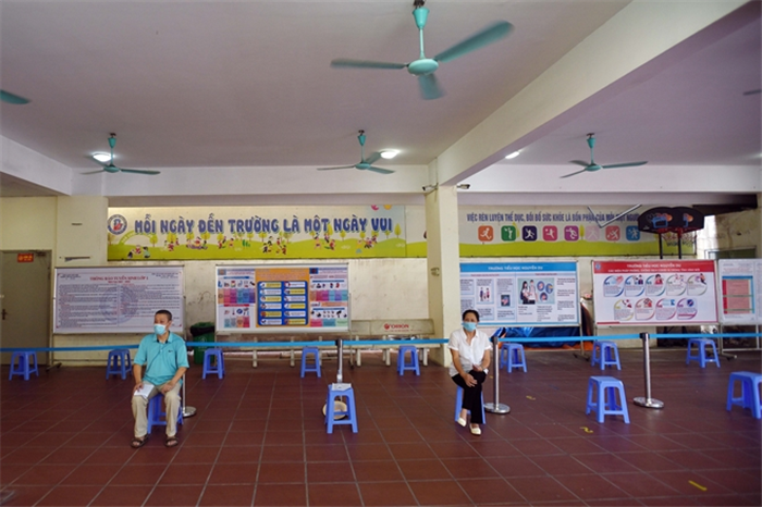 Sáng 27/7, Hà Nội bắt đầu đợt tiêm chủng vaccine phòng ngừa COVID-19 trên diện rộng. Ghi nhận của PV tại điểm tiêm chủng ở trường Tiểu học Nguyễn Du (phường Lý Thái Tổ, quận Hoàn Kiếm) do Trung tâm Y tế quận Hoàn Kiếm tổ chức.