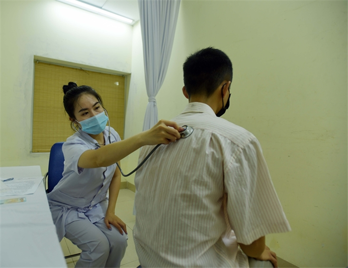 Nhân viên y tế hướng dẫn người dân trước khi tiêm vaccine