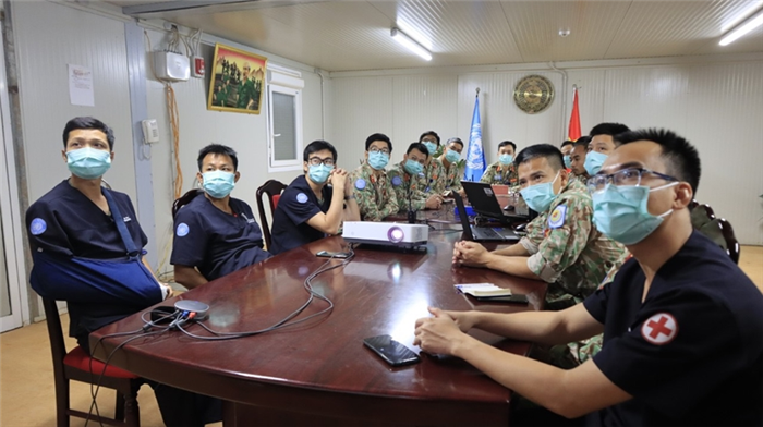 Bệnh viện dã chiến cấp 2 số 3 (BVDC 2.3) của Việt Nam tham gia Phái bộ Gìn giữ hòa bình Liên hợp quốc (GGHB LHQ) tại CH Nam Sudan lần đầu tiên phối hợp với BVDC cấp 2 của Ấn Độ tập huấn trực tuyến nâng cao năng lực y tế và phòng, chống dịch Covid-19.