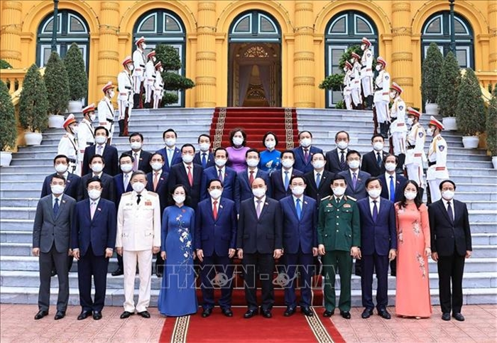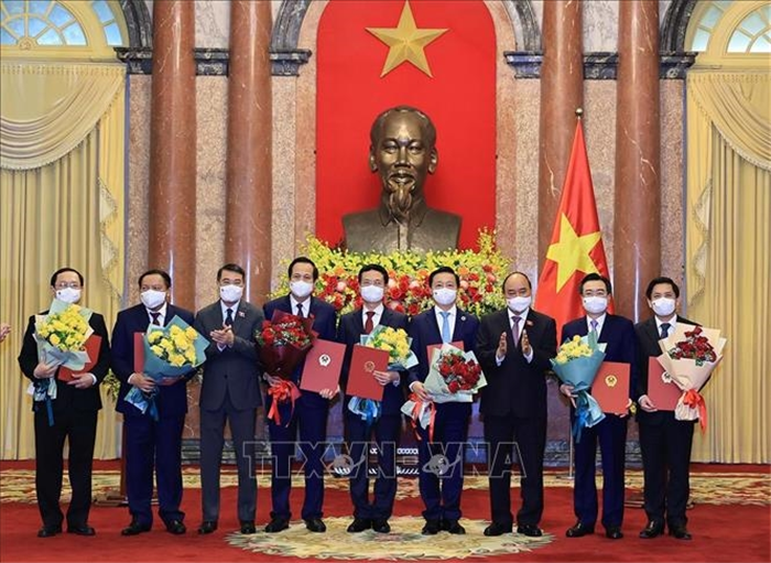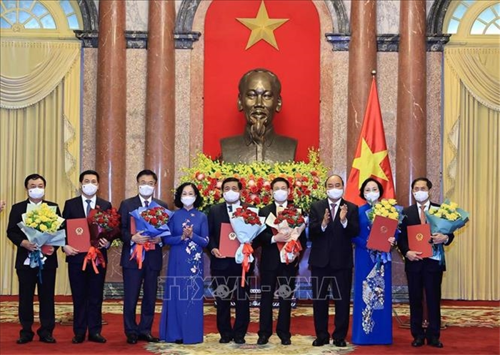 Chủ tịch nước cũng đã trao Quyết định bổ nhiệm các vị trí Bộ trưởng gồm: Đại tướng Phan Văn Giang - Bộ trưởng Bộ Quốc phòng; Đại tướng Tô Lâm - Bộ trưởng Bộ Công an; ông Bùi Thanh Sơn - Bộ trưởng Bộ Ngoại giao; bà Phạm Thị Thanh Trà - Bộ trưởng Bộ Nội vụ; ông Lê Thành Long - Bộ trưởng Bộ Tư pháp; ông Nguyễn Chí Dũng - Bộ trưởng Bộ Kế hoạch và Đầu tư; ông Hồ Đức Phớc - Bộ trưởng Bộ Tài chính; ông Nguyễn Hồng Diên - Bộ trưởng Bộ Công Thương; ông Lê Minh Hoan - Bộ trưởng Bộ Nông nghiệp và Phát triển nông thôn; ông Nguyễn Văn Thể - Bộ trưởng Bộ Giao thông vận tải; ông Nguyễn Thanh Nghị - Bộ trưởng Bộ Xây dựng; ông Trần Hồng Hà - Bộ trưởng Bộ Tài nguyên và Môi trường; ông Nguyễn Mạnh Hùng - Bộ trưởng Bộ Thông tin và Truyền thông; ông Đào Ngọc Dung - Bộ trưởng Bộ Lao động, Thương binh và Xã hội; ông Nguyễn Văn Hùng - Bộ trưởng Bộ Văn hóa, Thể thao và Du lịch; ông Huỳnh Thành Đạt - Bộ trưởng Bộ Khoa học và Công nghệ; ông Nguyễn Kim Sơn - Bộ trưởng Bộ Giáo dục và Đào tạo. Bộ trưởng Bộ Y tế Nguyễn Thanh Long đang bận chỉ đạo công tác phòng, chống dịch Covid-19 không tham dự buổi lễ.