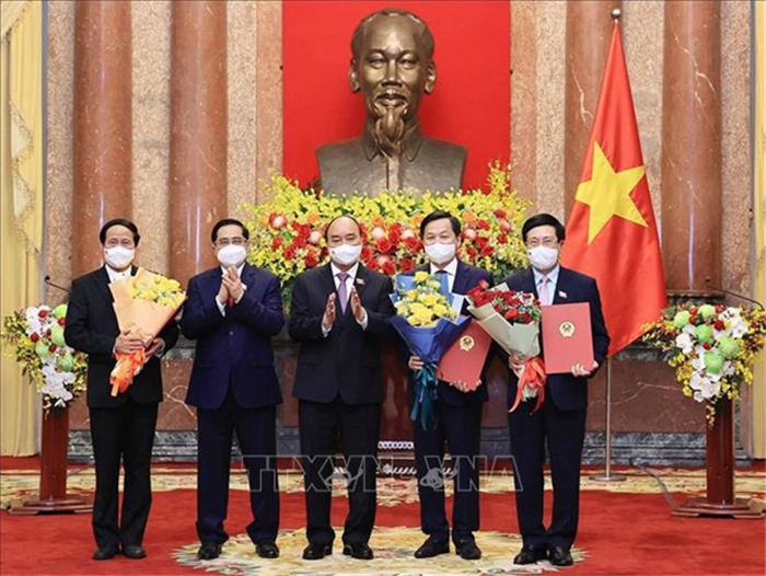 Tại buổi lễ, Chủ tịch nước Nguyễn Xuân Phúc đã trân trọng trao các Quyết định của Chủ tịch nước về việc bổ nhiệm chức danh Phó thủ tướng Chính phủ đối với các ông: Phạm Bình Minh, Lê Minh Khái và Lê Văn Thành. Riêng Phó thủ tướng Vũ Đức Đam đang chủ trì công tác phòng, chống dịch Covid-19 tại các tỉnh phía Nam nên không tham dự buổi lễ.