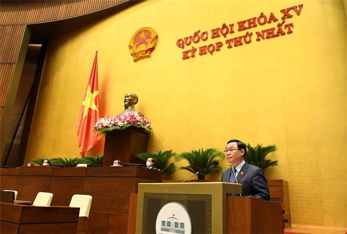 Thay mặt Quốc hội, Ủy ban Thường vụ Quốc hội, các đại biểu Quốc hội, Chủ tịch Quốc hội Vương Đình Huệ trân trọng cảm ơn những tình cảm sâu sắc, sự quan tâm, lãnh đạo, chỉ đạo sát sao của đồng chí Tổng Bí thư, các đồng chí lãnh đạo, nguyên lãnh đạo Đảng, Nhà nước, Mặt trận Tổ quốc Việt Nam, các bậc lão thành cách mạng, các vị khách quý; sự ủng hộ, tin tưởng, đồng lòng của đồng bào, chiến sĩ, cử tri cả nước đã dành cho Quốc hội và kỳ họp đầu tiên của Quốc hội khóa XV.