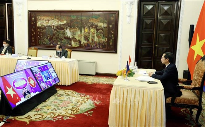 Bộ trưởng Bộ Ngoại giao Bùi Thanh Sơn tham dự Hội nghị Bộ trưởng Ngoại giao ASEAN – Hàn Quốc theo hình thức trực tuyến. Ảnh: TTXVN