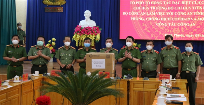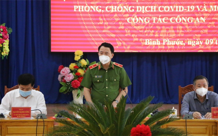 Báo cáo tại buổi làm việc, Đại tá Bùi Xuân Thắng, Giám đốc Công an tỉnh Bình Phước nêu rõ, từ khi bùng phát đợt dịch lần thứ tư vào cuối tháng 4/2021 đến nay, Công an tỉnh đã chỉ đạo lực lượng Công an cơ sở “đi từng ngõ, gõ từng nhà, rà từng người” để kiểm soát, quản lý chặt những người đi và về tỉnh Bình Phước; đồng thời, khẩn trương truy vết các trường hợp dịch tễ liên quan đến dịch bệnh COVID-19 do các tỉnh, thành phố thông báo để áp dụng các biện pháp cách ly, theo dõi. Ngày 30/6, tỉnh Bình Phước ghi nhận ca nhiễm COVID-19 đầu tiên là 01 thợ hồ có nguồn lây xuất phát từ tỉnh Bình Dương. Đến ngày 09/8, tỉnh Bình Phước đã ghi nhận 261 trường hợp nhiễm COVID-19. Qua điều tra dịch tễ, xác định nguồn lây từ TP. Hồ Chí Minh và tỉnh Bình Dương. Các trường hợp F0, F1, F2 đều được phát hiện, truy vết, cách ly kịp thời.