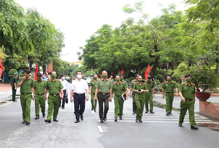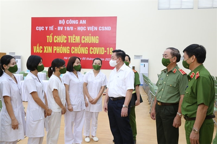 Đồng chí Nguyễn Trọng Nghĩa hỏi thăm, động viên các y, bác sĩ tại Học viện Cảnh sát nhân dân tham gia đội ngũ tiêm vắc-xin phòng ngừa COVID-19 cho cán bộ, chiến sĩ trong lực lượng Công an nhân dân. |