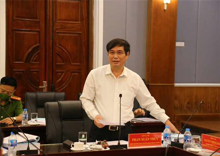 Đồng chí Phan Xuân Thủy, Phó Trưởng Ban Tuyên giáo Trung ương, Thành viên đoàn kiểm tra phát biểu tại buổi làm việc. |