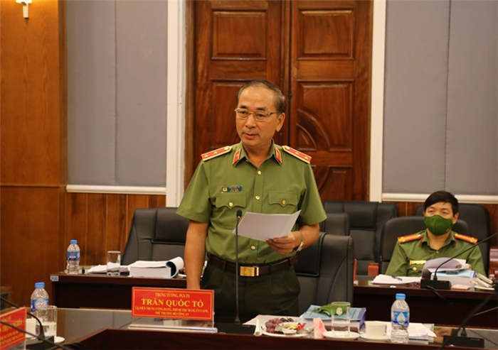 Trung tướng, PGS.TS Trần Quốc Tỏ, Ủy viên Trung ương Đảng, Thứ trưởng Bộ Công an phát biểu tại buổi làm việc. |