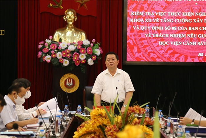 Thực hiện Quyết định của Ban Bí thư Trung ương Đảng, ngày 10/8/2021, Đoàn kiểm tra của Ban Bí thư do đồng chí Nguyễn Trọng Nghĩa, Bí thư Trung ương Đảng, Trưởng Ban Tuyên giáo Trung ương làm Trưởng đoàn đã kiểm tra việc thực hiện Nghị quyết Trung ương 4 khóa XII về xây dựng, chỉnh đốn đảng và Quy định số 08-QĐi/TW ngày 25/10/2018 của Ban Chấp hành Trung ương về trách nhiệm nêu gương của cán bộ, đảng viên tại Đảng bộ Học viện Cảnh sát nhân dân.
