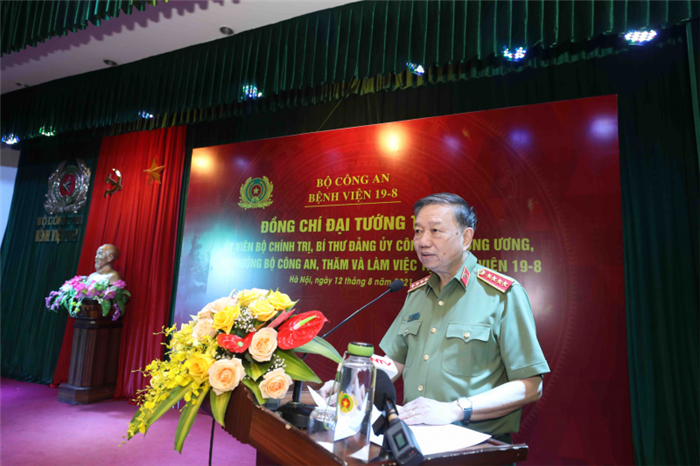 Chiều 12/8, Đại tướng Tô Lâm, Uỷ viên Bộ Chính trị, Bộ trưởng Bộ Công an dẫn đầu đoàn công tác kiểm tra hoạt động khám chữa bệnh tại Bệnh viện 19-8, Bộ Công an. Tham gia Đoàn công tác có Thượng tướng Nguyễn Văn Sơn, Thứ trưởng Bộ Công an; Trung tướng Tô Ân Xô, Chánh Văn phòng Bộ Công an; đại diện lãnh đạo các Cục nghiệp vụ thuộc Bộ Công an.
