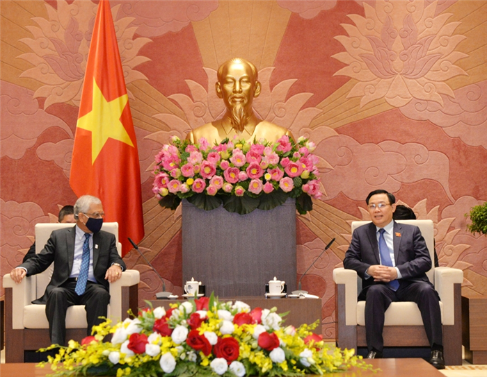Chủ tịch Quốc hội Vương Đình Huệ chúc mừng ngài Kamal Malhotra đã có một nhiệm kỳ công tác thành công, trân trọng cảm ơn Kamal Malhotra về những tình cảm, sự quan tâm, đóng góp và ủng hộ đối với Việt Nam trong suốt 32 năm qua.