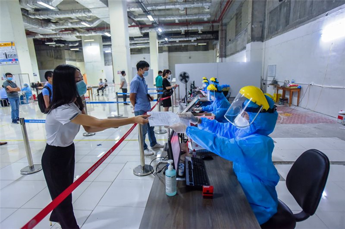 Hành khách xét nghiệm Covid-19 tại bệnh viện thuộc hệ thống Bệnh viện đa khoa Hồng Ngọc.