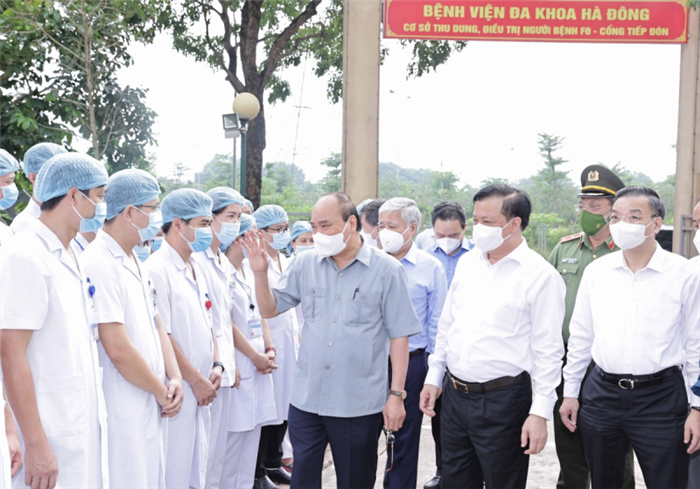 Chủ tịch nước Nguyễn Xuân Phúc đã thăm Khu thu dung, điều trị bệnh nhân F0 của Thành phố Hà Nội, trưng dụng từ Khu nhà ở sinh viên Pháp Vân – Tứ Hiệp, thuộc Phường Hoàng Liệt, Quận Hoàng Mai.