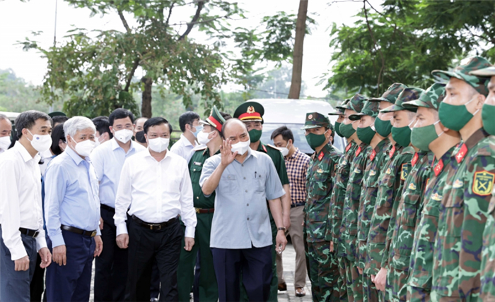 Chủ tịch nước Nguyễn Xuân Phúc đã động viên, thăm hỏi và giao nhiệm vụ cho các y, bác sỹ, nhân viên y tế và lực lượng quân đội tại khu vực. Lực lượng y tế, quân đội, công an không được để lây nhiễm COVID-19 và cần thực hiện các biện pháp phòng dịch quyết liệt, gương mẫu. "Còn trang thiết bị cần thì báo cáo Thành phố. Quân dân và lực lượng y tế phải kết hợp và nêu cao ý chí. Chưa có bệnh nhân thì chúng ta phải chuẩn bị kỹ lưỡng, có bệnh nhân thì phải làm ngày làm đêm, lo cho bệnh nhân để không ai đuối sức hay tử vong”, Chủ tịch nước nói.