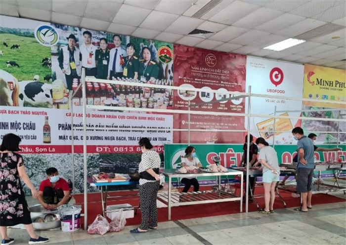 Nhằm đáp ứng nhu cầu lương thực, thực phẩm cho nhân dân môt số phường tại Hà Nội trong thời gian giãn cách xã hội do dịch bệnh COVID-19, Trung tâm Xúc tiến thương mại Nông nghiệp (Bộ Nông nghiệp và Phát triển Nông thôn) phối hợp với Công ty CP Xúc tiến thương mại nông nghiệp Việt Nam tổ chức Điểm bán hàng nông sản, thực phẩm an toàn bình ổn giá tại 489 Hoàng Quốc Việt, Cầu Giấy, Hà Nội.