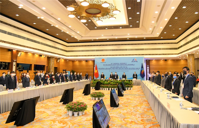 Chủ đề của AIPA-42 là “Phát triển quan hệ hợp tác nghị viện trong lĩnh vực kỹ thuật số bao trùm hướng tới Cộng đồng ASEAN năm 2025”. Đoàn đại biểu cấp cao Quốc hội Việt Nam do Chủ tịch Quốc hội Vương Đình Huệ dẫn đầu dự tại điểm cầu Hà Nội.