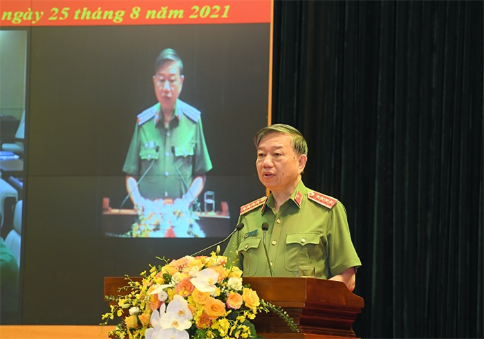 Ngày 25/8/2021, tại Hà Nội, Bộ Công an tổ chức Hội nghị giao ban trực tuyến để đánh giá tình hình, kết quả công tác công an tháng 8/2021. Đại tướng Tô Lâm, Ủy viên Bộ Chính trị, Bí thư Đảng ủy Công an Trung ương, Bộ trưởng Bộ Công an chủ trì Hội nghị.