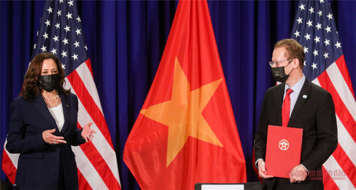 Trước đó, bà Kamala Harris đã chứng kiến lễ khai trương Trung tâm CDC Mỹ tại Hà Nội.
