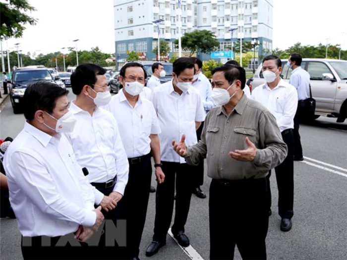 Thủ tướng Phạm Minh Chính kiểm tra công tác phòng, chống dịch Covid-19 tại TP Hồ Chí Minh. (Ảnh: TTXVN)