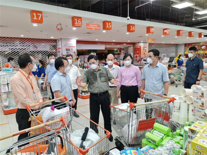 Rời Bệnh viện dã chiến điều trị COVID-19 Quân dân y Miền Đông, Thủ tướng tiếp tục đến kiểm tra kênh phân phối hàng hóa tại siêu thị Vinmart trên đường Lê Văn Việt, TP Thủ Đức./.