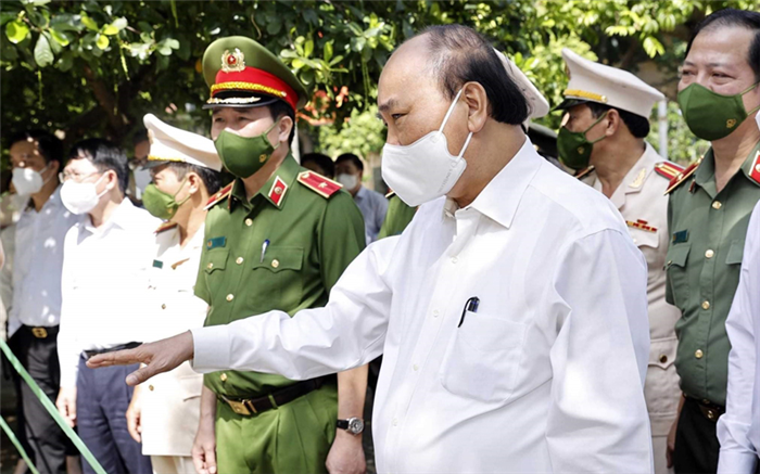 Chủ tịch nước Nguyễn Xuân Phúc kiểm tra công tác xét đặc xá năm 2021 tại trại giam Ngọc Lý, ngày 18/8 (Ảnh: TTXVN)