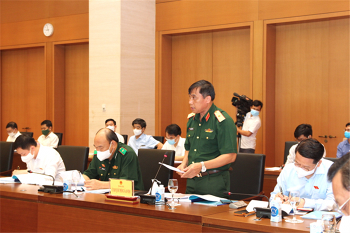 Tư lệnh CSCĐ Phạm Quốc Cương trình bày tờ trình tại phiên họp.