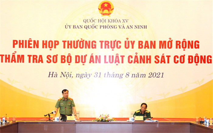 Sáng 31/8, Thượng tướng Trần Quang Phương, Ủy viên Trung ương Đảng, Phó Chủ tịch Quốc hội đã dự và chỉ đạo Phiên họp Thường trực Ủy ban Quốc phòng và An ninh (UBQPAN) mở rộng, thẩm tra sơ bộ Dự án Luật Cảnh sát cơ động (CSCĐ). Thiếu tướng Lê Tấn Tới, Ủy viên Trung ương Đảng, Chủ nhiệm UBQPAN chủ trì phiên họp.