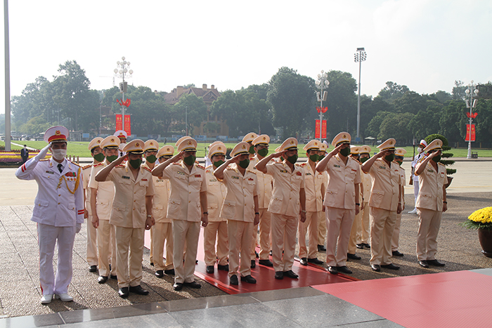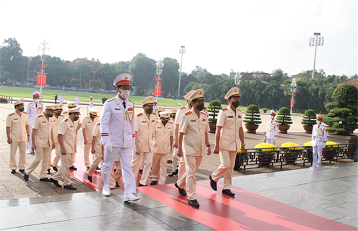 Đoàn đại biểu Đảng ủy Công an Trung ương, lãnh đạo Bộ Công an vào Lăng viếng Chủ tịch Hồ Chí Minh.
