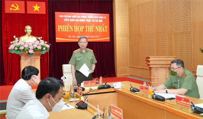 Chiều 13/9, Đại tướng Tô Lâm, Ủy viên Bộ Chính trị, Bộ trưởng Bộ Công an, thành viên Ban Chỉ đạo Quốc gia phòng, chống dịch COVID-19, Trưởng Tiểu ban An ninh trật tự xã hội (ANTTXH) của Ban Chỉ đạo Quốc gia phòng, chống dịch COVID 19 chủ trì Phiên họp thứ nhất của Tiểu ban.