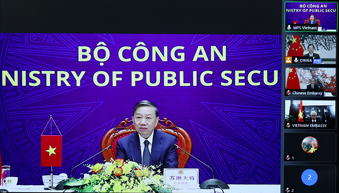 Đó là nội dung được thảo luận tại cuộc hội đàm trực tuyến giữa Đại tướng Tô Lâm, Ủy viên Bộ Chính trị, Bí thư Đảng ủy Công an Trung ương, Bộ trưởng Bộ Công an Việt Nam và đồng chí Quách Thanh Côn, Ủy viên Bộ Chính trị, Bí thư Ủy ban Chính pháp Trung ương Đảng Cộng sản Trung Quốc, diễn ra chiều 15/9, tại Hà Nội.