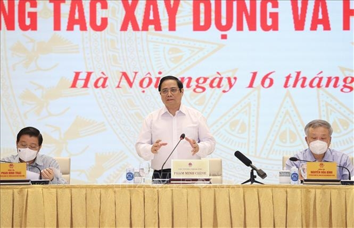 Người đứng đầu Chính phủ yêu cầu việc xây dựng và hoàn thiện thể chế phải bám sát chủ trương, đường lối của Đảng, cụ thể là 3 đột phá chiến lược, 6 nhiệm vụ trọng tâm và 12 định hướng lớn mà Đại hội XIII của Đảng đã đề ra. Theo đó, xây dựng các luật, nghị định, hướng dẫn là để thể chế hóa, đưa chủ trương, đường lối của Đảng thực sự đi vào cuộc sống.