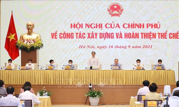 Sáng 16-9, tại trụ sở Chính phủ, Thủ tướng Phạm Minh Chính đã chủ trì, điều hành Hội nghị của Chính phủ về công tác xây dựng và hoàn thiện thể chế. Hội nghị được tổ chức theo hình thức trực tuyến giữa đầu cầu trụ sở Chính phủ với 63 tỉnh, thành phố trong cả nước.